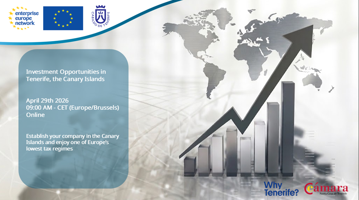 Aicinām piedalīties informatīvā tiešsaistes sesijā, kurā uzzināsiet par galvenajām priekšrocībām uzņēmējdarbības uzsākšanai Tenerifē, Kanāriju salās. Šī sesija tiek organizēta sadarbībā ar Enterprise Europe Network (EEN) un iniciatīvu Why Tenerife.